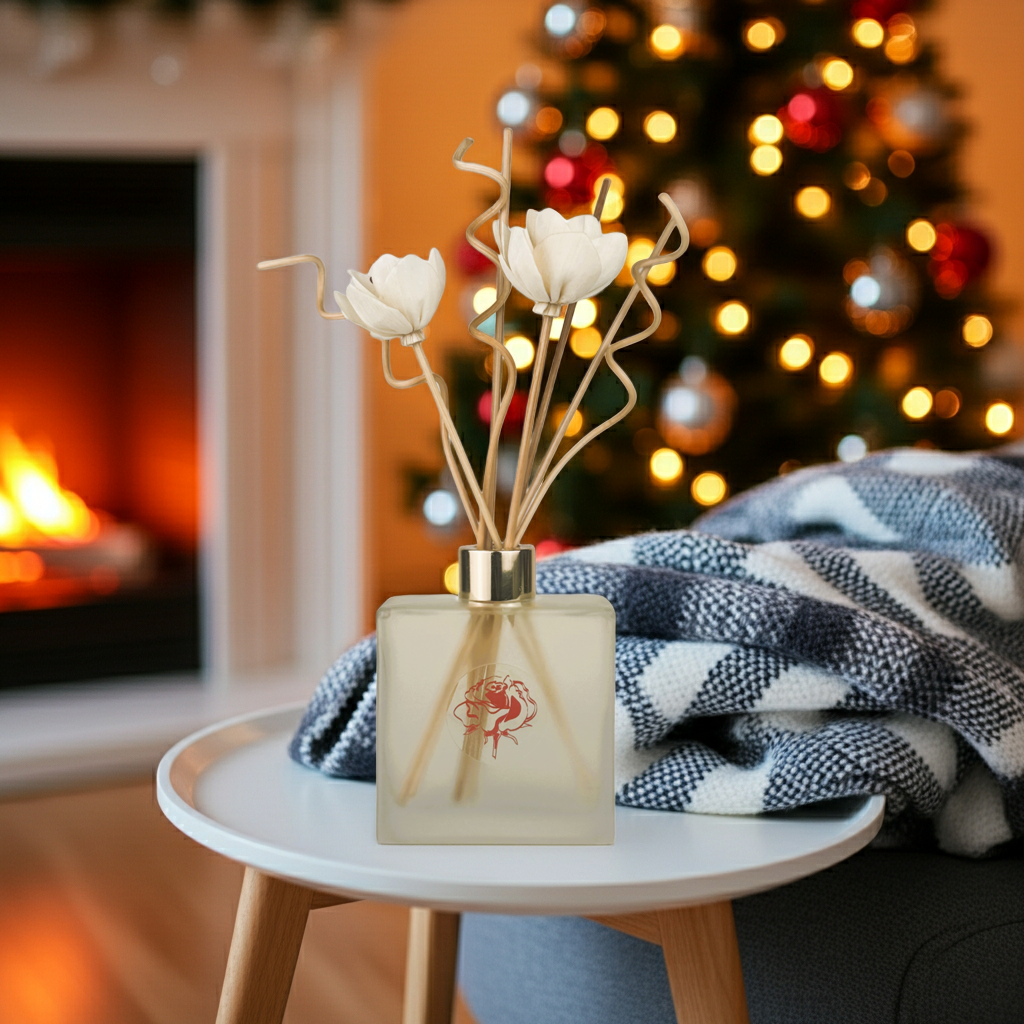 Each diffuser includes natural rattan and flower reeds crafted from the Rice Paper Plant for elegant decor and long-lasting, flame-free fragrance. Infused with essential oils including sage, clove leaf, eucalyptus, patchouli, juniper, cypress, and pine, Winter Chalet fills your home with up to 5 months of calming, wintry aroma.